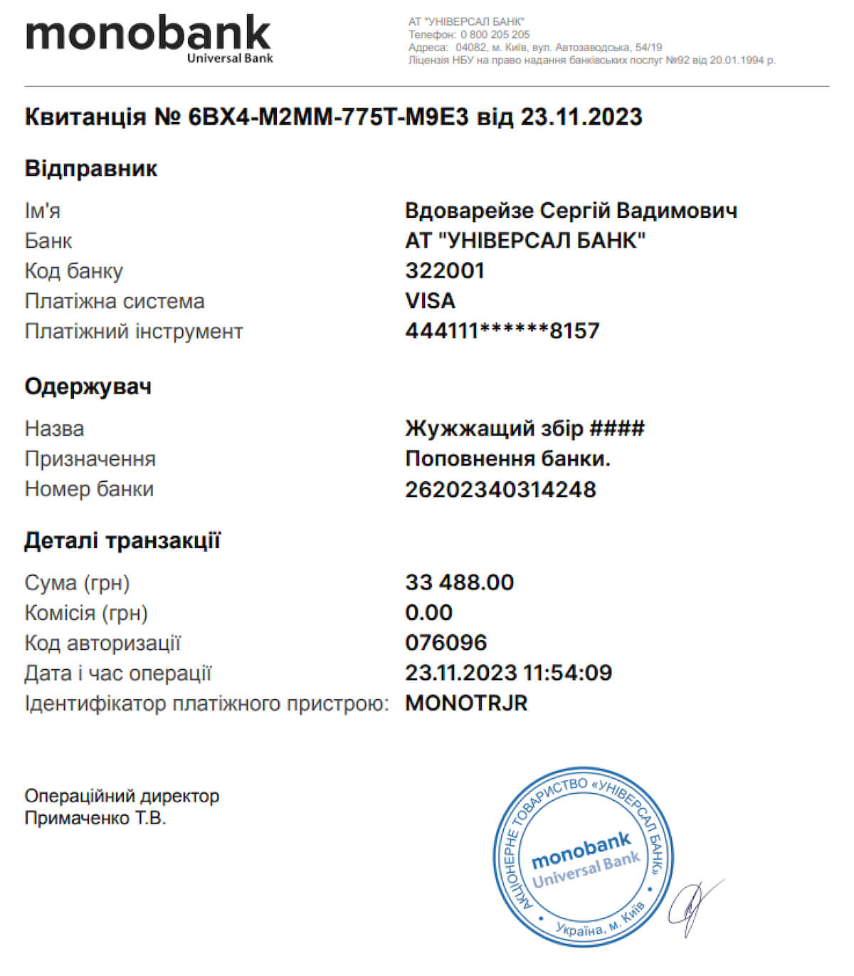 Зібрана допоміжна сума 33 488 грн.