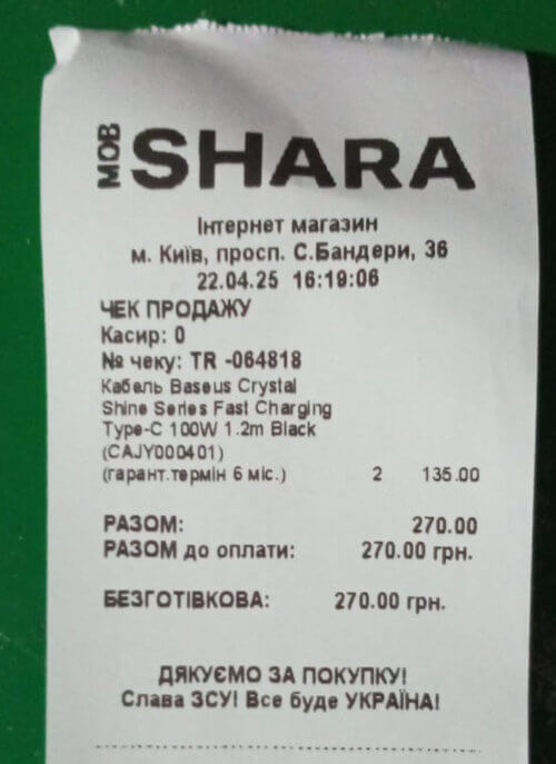 - Кабель Fast Charging USB to Type-C, 100W (4шт.) — 548 грн.