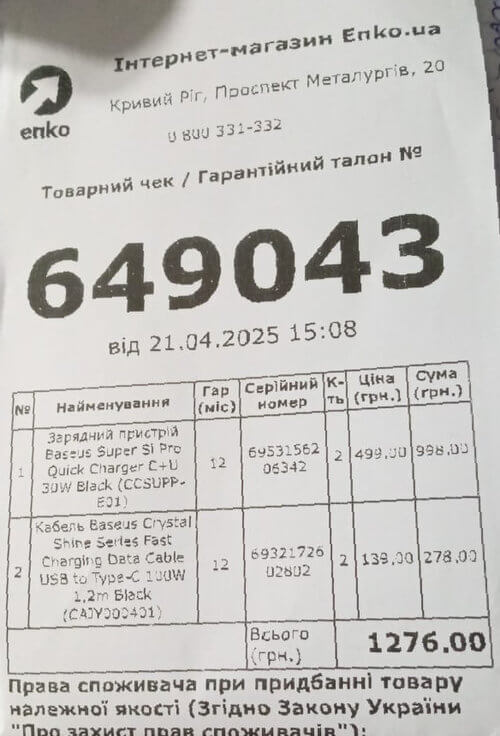 - Зарядний пристрій 30W type-c, type-a (2шт.) — 998 грн.