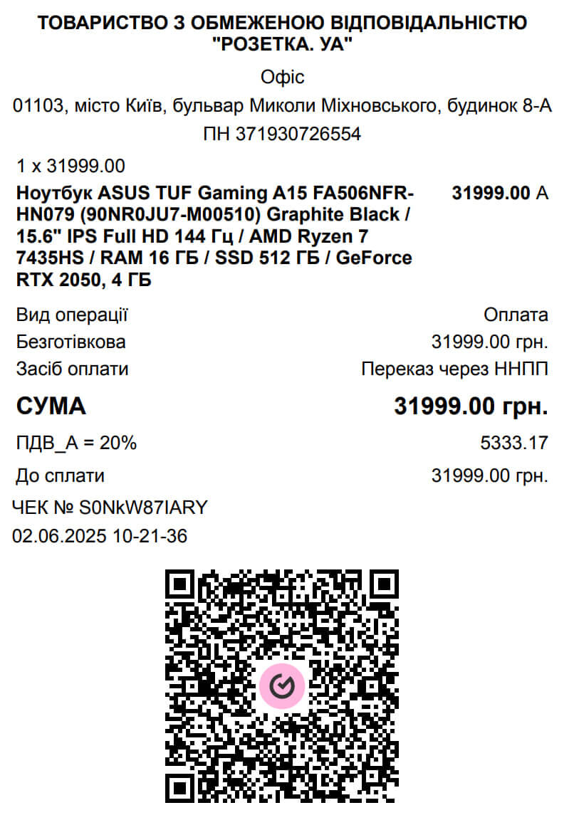 Було закуплено ноутбук ASUS TUF A15 FA506NFR